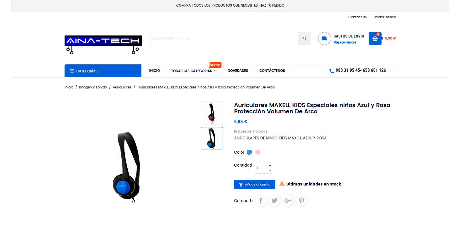 Diseño web de tienda online Ainatech con las últimas tendencias en diferentes categorias como imagen, sonido, electricidad.