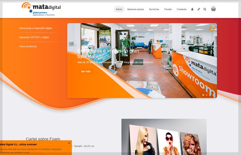 Diseño web de la tienda online de Mata Digital, empresa de reprográfica y sencilla estructura, ofreciendo servicios de reprografía y reproducción general en la plaza de la Universidad de Valladolid.